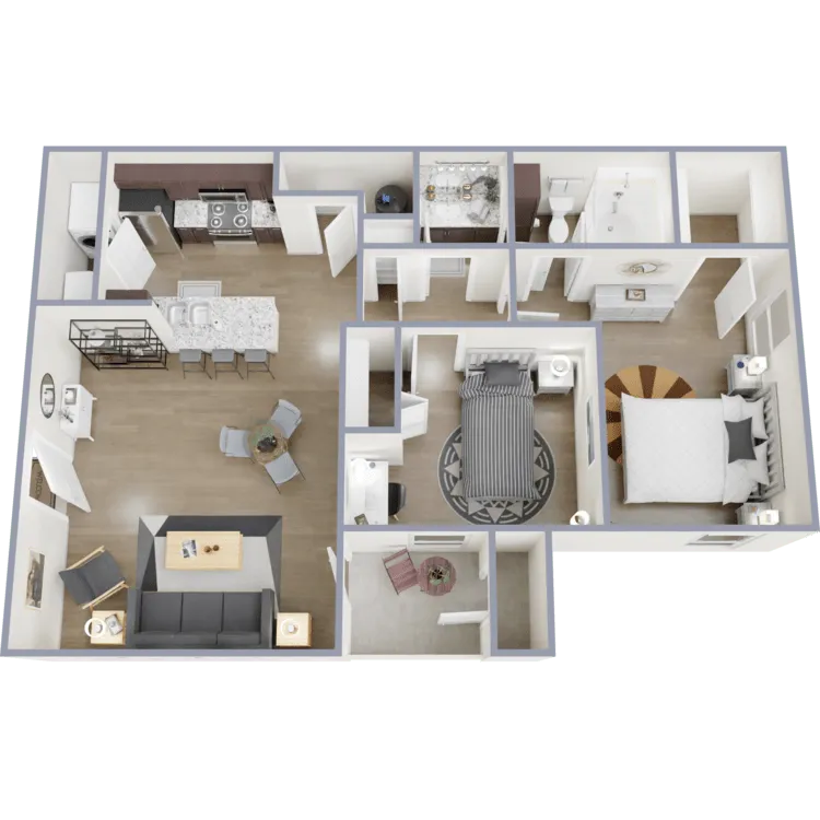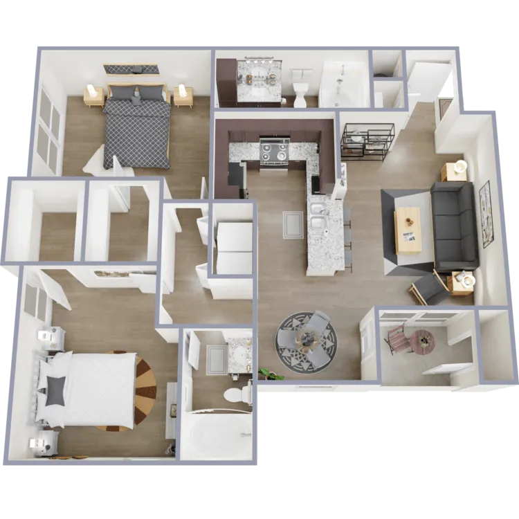 Our first-rate one, two, and three-bedroom apartments for rent are something to brag about. Meticulously designed to cater to various tastes and lifestyles, our spacious floor plans feature beautiful wood-style flooring that provides a gorgeous aesthetic, complemented by rich espresso cabinets. Each apartment home features stainless steel appliances and granite countertops for a chef's feel as you create your master dishes. Don’t forget to bring your pets; we are a pet-friendly community.